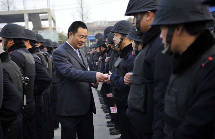 2月3日大年初一上午,市公安局黨委委員、副局長、紀委書記初曉在公司總經(jīng)理婁伯翱、副總經(jīng)理王克、徐文剛的陪同下,親切慰問了總公司武裝押運員并發(fā)放了慰問金。初書記代表市局黨委向大家拜年并致以節(jié)日的問候和祝福!