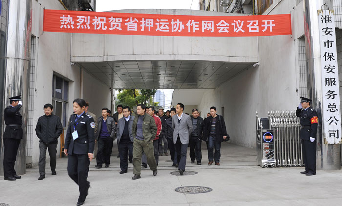 2011年11月30日至12月1日,江蘇省押運(yùn)協(xié)作網(wǎng)第五次會(huì)議在淮安召開,淮安市公安局初曉副局長(zhǎng)致歡迎詞,來(lái)自南京、無(wú)錫、蘇州、鎮(zhèn)江、常州、南通、泰州、揚(yáng)州、徐州、連云港、鹽城、宿遷、淮安等全省十三個(gè)市的保安(押運(yùn))公司總經(jīng)理和分管領(lǐng)導(dǎo)40余人參加了會(huì)議。省公安廳治安局賁志平副局長(zhǎng)、省公安廳保安監(jiān)管科錢幼菁科長(zhǎng)、淮安市公安局治安支隊(duì)劉硯明政委以及保安監(jiān)管科領(lǐng)導(dǎo)應(yīng)邀出席會(huì)議。