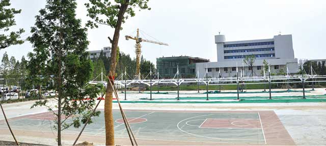 建設(shè)中的辦公樓和停車場(chǎng)一角