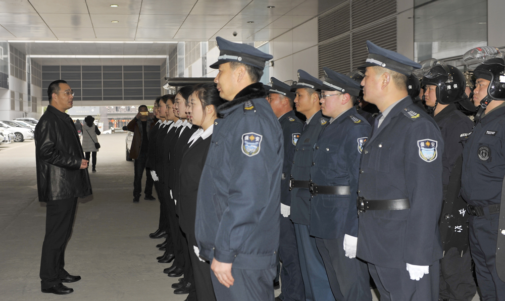當(dāng)天上午,在人防管理中心總監(jiān)王錦春陪同下,婁伯翱總經(jīng)理慰問了駐市審批中心、市財經(jīng)學(xué)院、市護理學(xué)院等人防執(zhí)勤點以及銀盾駕校等部門值班保安員工。到每一個執(zhí)勤點,婁伯翱總經(jīng)理都與堅守崗位的保安員握手并致以新春的問候,祝福大家新春快樂、全家幸福!并勉勵大家在新的一年里勤奮工作,敬業(yè)奉獻(xiàn),為淮安保安工作再上新臺階作出更大的努力!