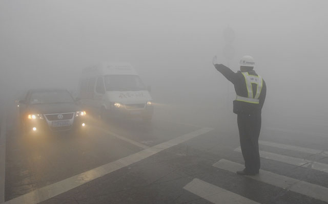濃霧襲淮安 保安協(xié)警保交通安全