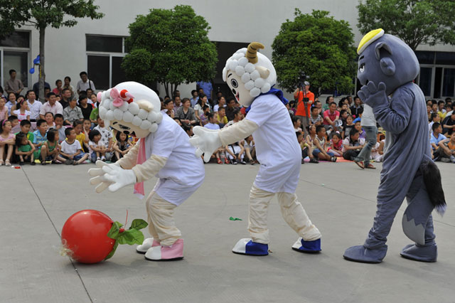 下午兩點多,天空格外的湛藍,孩子們陸陸續(xù)續(xù)走進公司院內(nèi),到處充滿了節(jié)日的氣息,樹上、墻上都掛滿了氣球和彩帶,一副熱鬧的景象。還有可愛的卡通人物喜羊羊與美羊羊、灰太狼和米妮在院子里給孩子們派發(fā)甜蜜的糖果,讓孩子們洋溢在快樂中。