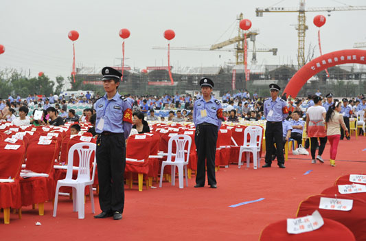 2012年6月16日晚,“七星島之夜”群星演唱會在市清河新區(qū)七星島公園舉行,著名歌手齊秦、楊鈺瑩、張鎬哲、愛戴、孫浩、張也、黑鴨子組合等演藝明星同臺獻(xiàn)藝。為淮安觀眾奉獻(xiàn)一場精彩紛呈的文藝大餐。受主辦方邀請,總公司保安人防中心派出200名保安員參加了晚會現(xiàn)場的部分安保任務(wù)。全體執(zhí)勤隊員高度負(fù)責(zé)、認(rèn)真履行崗位職責(zé),文明執(zhí)勤,圓滿完成了安保任務(wù)。