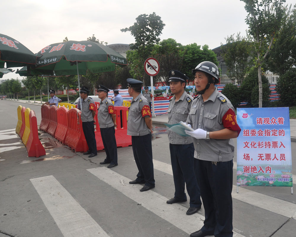 200名執(zhí)勤保安員在晚會(huì)當(dāng)日下午13:00,按照指揮部的統(tǒng)一部署分配到各執(zhí)勤崗位。按照指揮部的執(zhí)勤要求,全體隊(duì)員克服高溫天氣的影響,認(rèn)真履行崗位職責(zé),大部分隊(duì)員衣服全部被汗水淋透了,他們?nèi)匀粓?jiān)守崗位。在整個(gè)執(zhí)勤當(dāng)期,7檢票口的同志共查出假票40余張,收繳假工作證件50余件,阻止無票、無證人員進(jìn)入現(xiàn)場(chǎng)800余人次,另外還配合當(dāng)?shù)毓矆?zhí)勤民警收繳各類危險(xiǎn)品400余件,有效防止各類隱患事故的發(fā)生。