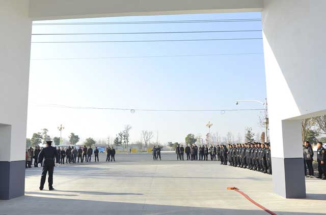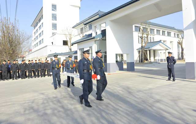 雖然室外氣溫格外寒冷,但這里卻充滿了春天的氣息。上午9時50分,4名禮儀保安抬著一塊披著紅綢的標(biāo)牌, 邁著整齊的步伐走向公司大門,9時58分,江蘇省淮安市保安服務(wù)總公司標(biāo)牌緩緩地、平穩(wěn)地掛了起來,現(xiàn)場響起陣陣鞭炮聲和熱烈的掌聲,大家共同為總公司新址掛牌而歡欣鼓舞。