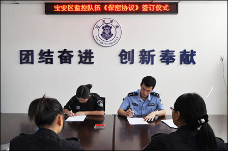 為進一步提高監(jiān)控員保密意識,落實涉密人員保密責任,確保公安工作秘密安全,9月9日下午,廣東省深圳市寶安區(qū)保安服務公司信息工程部組織全體監(jiān)控隊員在會議室進行了保密協(xié)議簽訂儀式。信息工程部經(jīng)理張洹分別與每名監(jiān)控隊員簽訂了《保密協(xié)議書》,要求監(jiān)控員仔細閱讀和領會《保密協(xié)議書》的內(nèi)容,嚴格遵守保密的內(nèi)容和范圍、保密義務、保密期限和違約責任。