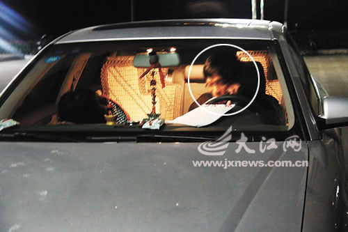 昨日傍晚6時(shí)20分許,記者來到華東交大北門校區(qū)內(nèi),只見一輛奧迪A4小車停在大門旁,駕駛位上一名男子邊抽煙邊打著電話,副駕駛位上的女學(xué)生則趴著,遮住了臉。