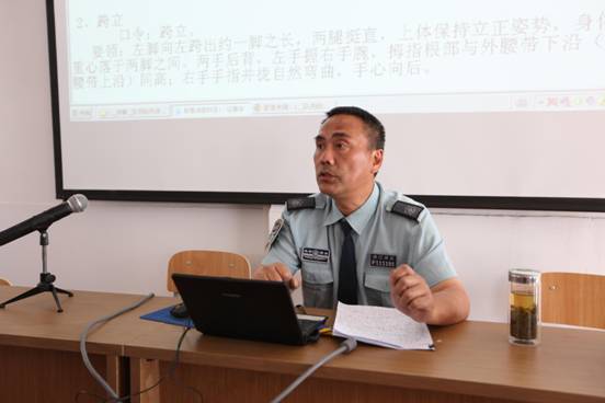 圖為:培訓(xùn)中心主管,于鳴同志正在講解隊(duì)列訓(xùn)練科目要求