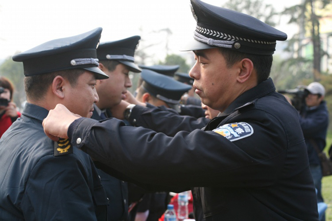 11月22日上午9點(diǎn)30分,公司保安員換新裝儀式在龍都廣場(chǎng)舉行,儀式現(xiàn)場(chǎng),首批100余名保安員穿上了2011式服裝。公司領(lǐng)導(dǎo)及天橋分局治安大隊(duì)保安管理科領(lǐng)導(dǎo)為保安員授銜。隨后,全體身著新式保安制服的保安員進(jìn)行了隊(duì)列演練;最后,公司領(lǐng)導(dǎo)強(qiáng)調(diào):在換裝后保安隊(duì)伍將按照公安部要求,加強(qiáng)保安隊(duì)伍建設(shè),努力建設(shè)一支素質(zhì)過(guò)硬、形象良好、服務(wù)規(guī)范、群眾滿意的保安隊(duì)伍,也希望我們?nèi)w保安員要以這次換裝為契機(jī),進(jìn)一步增強(qiáng)榮譽(yù)感、責(zé)任感和使命感,外樹形象、內(nèi)增素質(zhì),推動(dòng)安保工作再上新臺(tái)階。在社會(huì)治安工作中發(fā)揮重要作用。