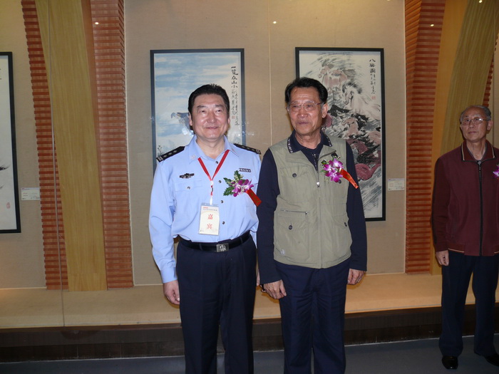 (上圖)公司肖樹勝總經(jīng)理與中國人民解放軍海軍原副司令員趙興發(fā)中將在展廳合影
