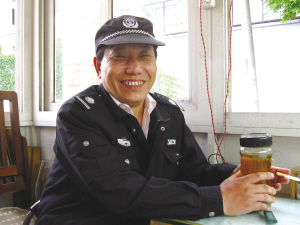 秦師傅54歲,杭州人,原是一家絲綢廠工人,2007年下崗,到三合院小區(qū)當保安,到今年6月滿5年了。