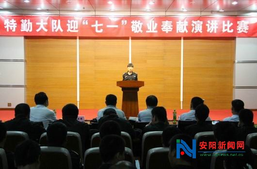 安陽新聞網(wǎng)訊 為慶祝黨的91歲生日,進(jìn)一步激發(fā)隊(duì)員對(duì)黨的熾熱情感,激發(fā)他們對(duì)黨忠誠、為黨奉獻(xiàn)、聽黨指揮的黨性意識(shí)。6月26日晚,安陽市保安公司駐中國文字博物館特勤大隊(duì)在中國文字博物館會(huì)議室舉辦了迎“七·一” 敬業(yè)奉獻(xiàn)演講比賽。
