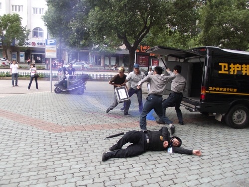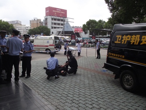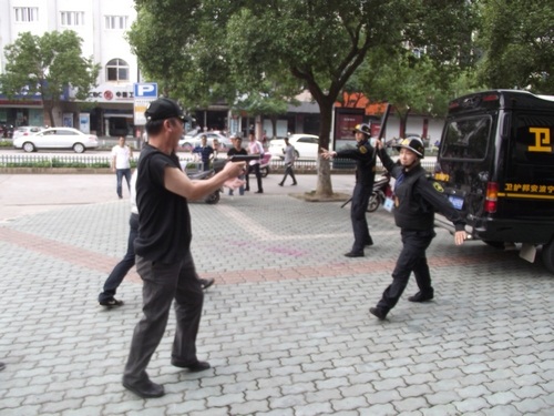 象山縣公安局舉行了反恐怖應(yīng)急實戰(zhàn)演練,寧波安邦護衛(wèi)有限公司象山大隊參與了配合。演練內(nèi)容為:當(dāng)運鈔車到達民生銀行網(wǎng)點正卸款箱時,突遇兩名持槍械恐怖分子沖向運鈔車,擊斃兩名押運員后,用煙霧彈實施爆炸,正要奪款箱而逃時銀行兩名保安員沖出網(wǎng)點與恐怖分子搏斗。公安機關(guān)接警后,110指揮中心立即下達指令,迅速調(diào)集武警、巡警、交警、刑警、消防等百余名警力和120急救中心緊急趕赴現(xiàn)場,進行消防滅火和醫(yī)療急救,公安機關(guān)進行現(xiàn)場勘查,并堵截交通要道,最終擒獲恐怖分子,追回款箱。縣政府、縣公安局有關(guān)領(lǐng)導(dǎo)到場觀摩了演習(xí)。
