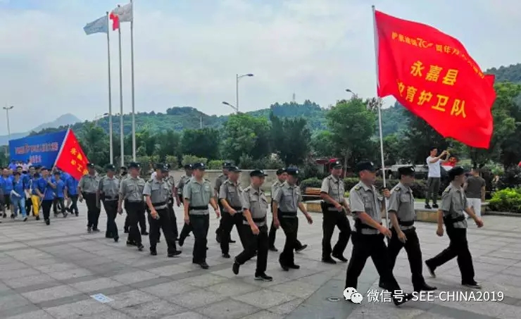 由永嘉縣委政法委和縣公安局主辦,多部門參加的“護(hù)航建國70周年萬人百日大巡防活動(dòng)”,于2019年7月1日上午在縣城體育館廣場啟動(dòng)。永嘉縣保安公司教育安保大隊(duì)精心組織20人的教育護(hù)衛(wèi)隊(duì)代表縣保安服務(wù)有限公司參加此次活動(dòng)。