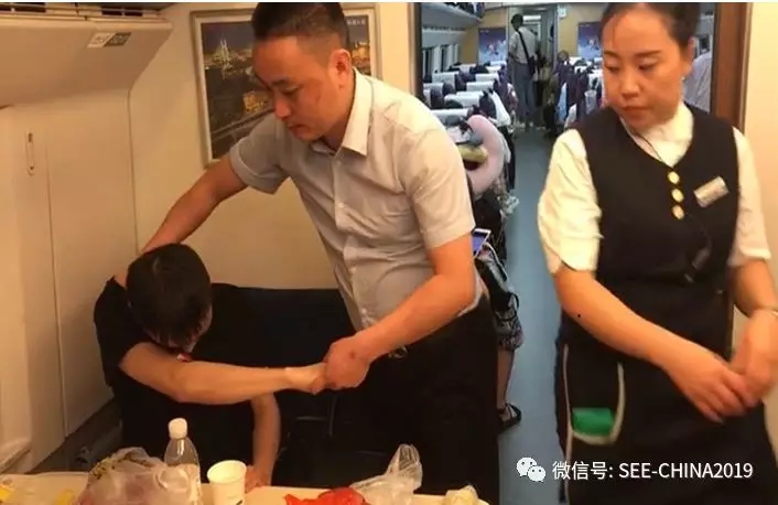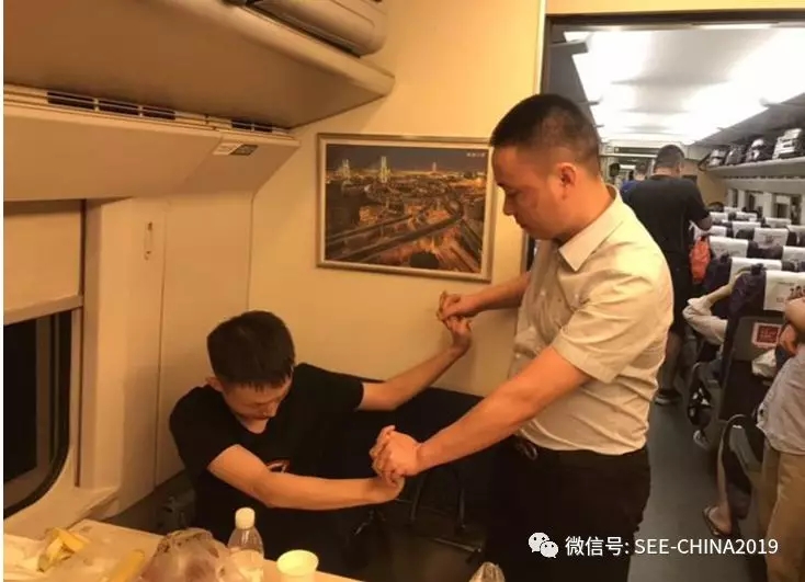 昨晚從福州南站開(kāi)往溫州南站的動(dòng)車(chē)D3212組列車(chē)上正在緊急廣播一位病人突發(fā)心臟病抽筋,臉色蒼白心悶疼痛,動(dòng)車(chē)組乘務(wù)員廣播了3次尋救醫(yī)務(wù)乘客或其他乘客參與臨時(shí)急救,時(shí)間過(guò)去了十多分鐘,仍無(wú)一人相助,就在這個(gè)心急如焚的時(shí)刻,一位臨危不懼“見(jiàn)義勇為”的好人挺身而出,在短短的幾分鐘穴位按摩活動(dòng),患者已奇跡般的反過(guò)神來(lái),如果沒(méi)有及時(shí)處理很有可能會(huì)導(dǎo)致心臟驟停的嚴(yán)重后果。當(dāng)列車(chē)長(zhǎng)、患者夫婦及車(chē)廂內(nèi)所有人看到這有驚無(wú)險(xiǎn)的感人一幕都高興不已,大家紛紛拍手稱道。列車(chē)長(zhǎng)為這位好心人點(diǎn)贊并問(wèn)道:“如此神奇!您是什么職業(yè)的?謝謝您及時(shí)出手相救。”他終于露出了專注緊張搶救后的笑容說(shuō):“救死扶傷、保家衛(wèi)國(guó)是我的神圣職責(zé),我是軍人退伍到溫州做保安......”這種退伍不褪色“見(jiàn)義勇為”的精神事跡樹(shù)立了正能量,只要人人都獻(xiàn)出一點(diǎn)愛(ài),世界將變成美好的人間。