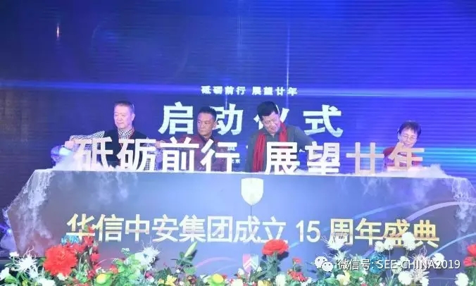 藍圖繪就,正當揚帆破浪!? 任重道遠,更需策馬揚鞭!會議尾聲,中國保安協(xié)會栗萍女士、北京保安協(xié)會副秘書長何鋼先生、上級監(jiān)管單位顧巖先生與華信中安集團董事長殷衛(wèi)宏先生共同上臺,開啟按鈕拉開展望二十年序幕。