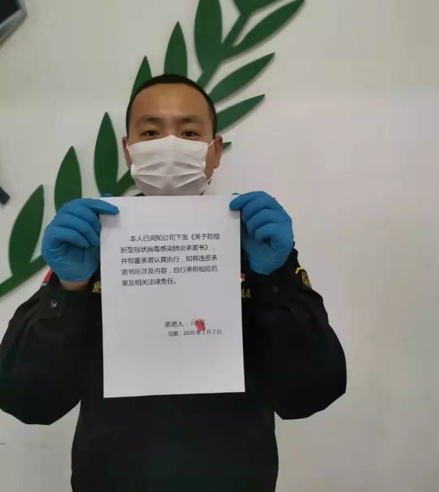(三)普及新型冠狀病毒肺炎的防控知識(shí),提高全體員工的防控意識(shí)。嚴(yán)禁走街串巷、走親訪(fǎng)友、親友聚會(huì),通過(guò)公眾號(hào)、微信群等宣傳途徑,大力宣傳、普及預(yù)防新型冠狀病毒肺炎的相關(guān)知識(shí),提高全體員工的公共衛(wèi)生意識(shí)和防治突發(fā)事件的能力,公司全體員工簽訂防疫承諾書(shū)。