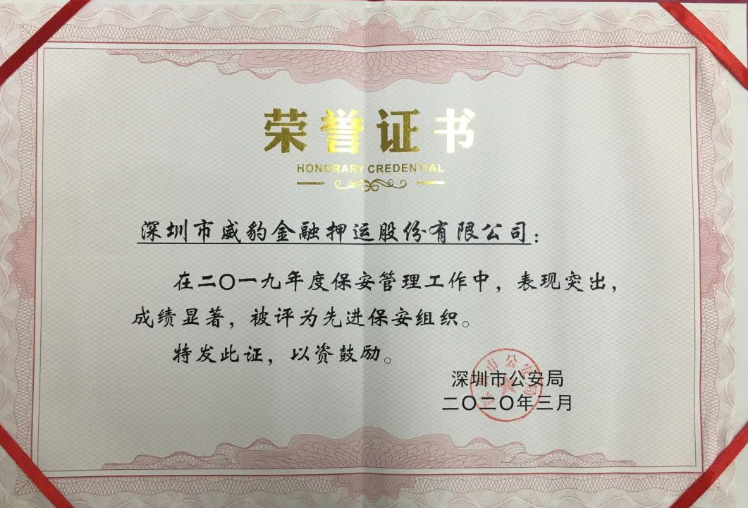 公司董事長胡可、總經(jīng)理王瑋分別代表威豹押運、威豹保安接受了榮譽牌匾和證書 周立群副支隊長首先向威豹押運和威豹保安公司在2019年度取得的成績表示祝賀,他說,威豹公司在去年的工作中表現(xiàn)優(yōu)異,特別是在70周年大慶安保工作中,不但利用企業(yè)資源無償為社會提供了安保服務(wù),還有效保障了周年煙花匯演順利進行。周副支隊長表示,榮譽既是肯定也是責任,希望威豹公司能夠在新的一年里繼續(xù)發(fā)揮保安隊伍協(xié)助維護社會治安穩(wěn)定的作用,為建設(shè)平安深圳做出積極的貢獻。