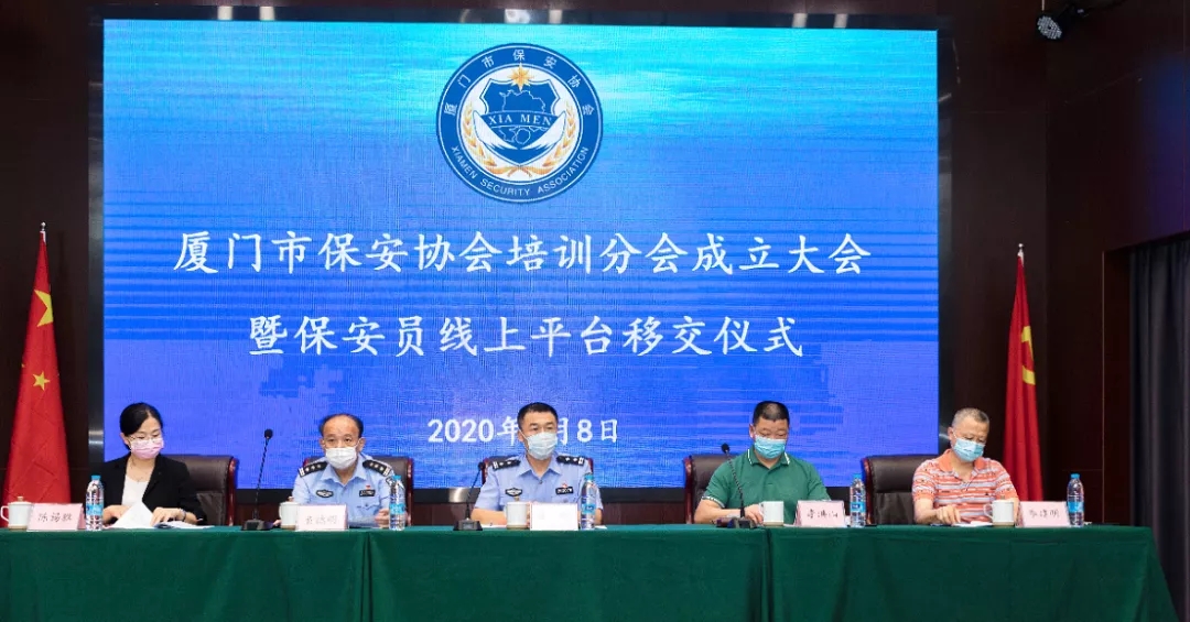 7月8日,廈門市保安協會培訓分會成立大會暨保安員線上培訓平臺移交儀式在廈門海鑫金融保安守押有限公司舉行。廈門市公安局治安支隊、市保安協會相關領導出席。