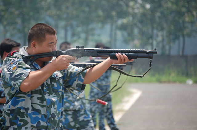 7月29日,一名武裝押運(yùn)員正在打靶,一枚彈殼從其槍中彈出,子彈應(yīng)聲中靶。當(dāng)日,淮安市保安服務(wù)總公司組織130名武裝押運(yùn)員進(jìn)行實(shí)彈打靶,開(kāi)展練兵活動(dòng)。