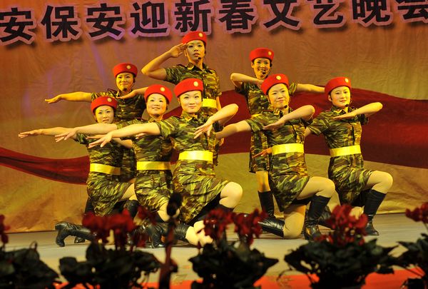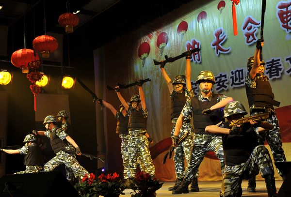 整場晚會(huì),都是各部門員工自編自演,以自娛自樂為主。機(jī)關(guān)女職工帶來的舞蹈《印度新娘》,用優(yōu)美的舞姿展示了她們昂揚(yáng)向上的精神風(fēng)貌。保安部編排的節(jié)目《鬧春》則另辟蹊徑,八位由小伙子反串的老太太步履蹣跚卻充滿風(fēng)趣,將那一份喜迎新春的歡樂散播到每一個(gè)人身上。機(jī)關(guān)男職工編排的舞蹈《窮開心》和劍蘭賓館的女員工的《拉丁舞》也博得滿堂喝彩。武裝押運(yùn)中心的舞蹈《當(dāng)祖國召喚的時(shí)候》將晚會(huì)推向了一個(gè)高潮,十位頭戴鋼盔、身著迷彩服、手持鋼槍的押運(yùn)隊(duì)員邁著鏗鏘有力的步伐宣誓他們的忠誠與剛毅,展現(xiàn)了武裝押運(yùn)員的風(fēng)采和雄姿。