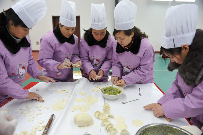 在煮餃子時候,每組又推選出一名女員工,參加“最佳能手”獎的比拼。只見在裁判規(guī)定的十分鐘內(nèi),四名女員工熟練的將刀工、手法、以及包餃子的技巧一一展現(xiàn),讓大家一飽眼福。