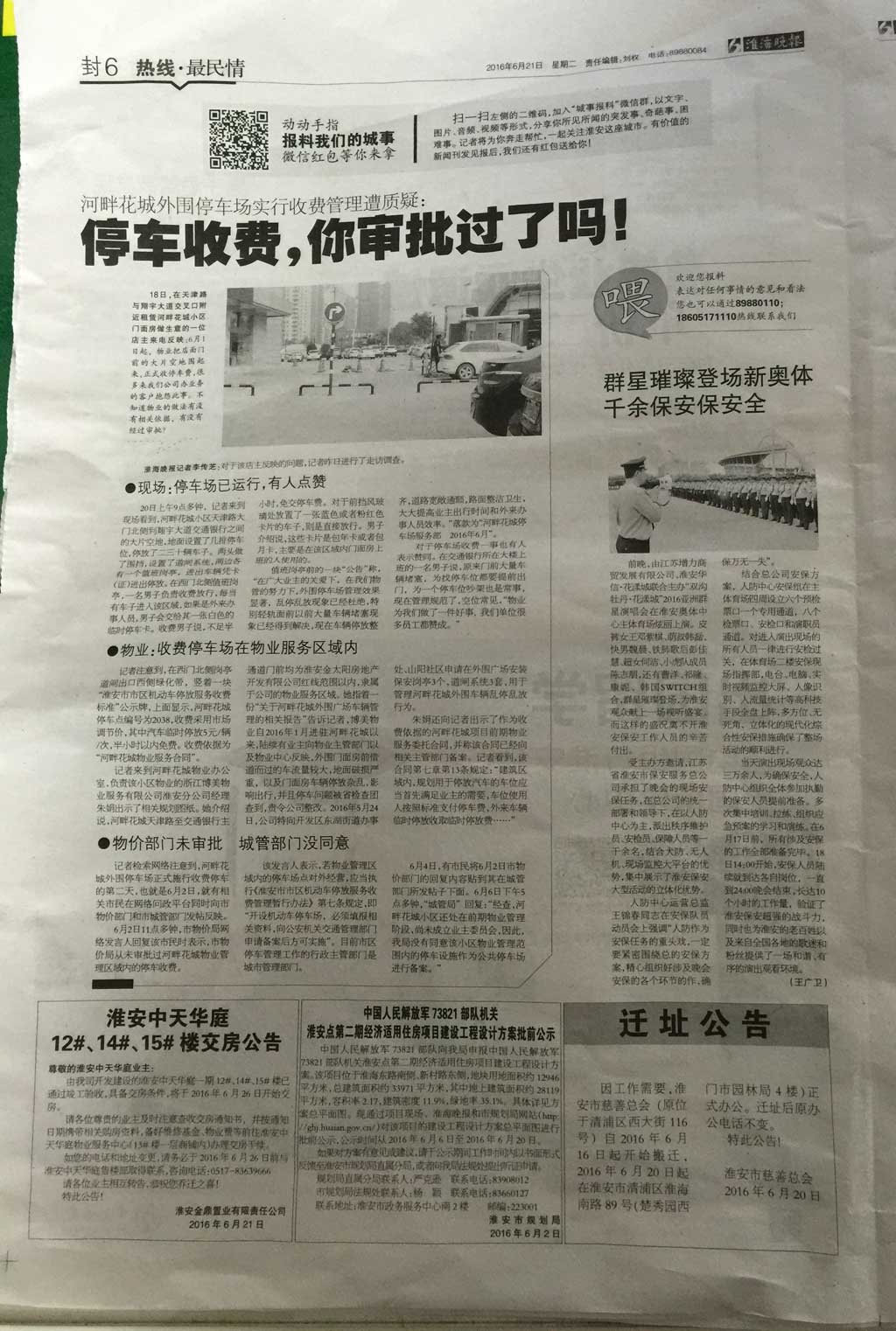 由江蘇增力商貿(mào)發(fā)展有限公司、淮安華信·花漾城聯(lián)合主辦“雙溝牡丹·花漾城”2016亞洲群星演唱會于6月18日晚上在淮安奧體中心主體育場炫麗上演。受主辦方邀請,我公司承擔(dān)了晚會的現(xiàn)場安保任務(wù)。當(dāng)天現(xiàn)場觀眾達三萬余人,為確保安全,在總公司的統(tǒng)一部署和領(lǐng)導(dǎo)下,派出了秩序維護員、安檢員、保障人員等一千余名的強大陣容,同時結(jié)合犬防、無人機、現(xiàn)場監(jiān)控大屏等優(yōu)勢,集中展示了淮安保安大型活動的綜合立體化優(yōu)勢和超強的戰(zhàn)斗力,受到了社會各界的充分肯定和高度評價,并于2016年6月21日在《淮海晚報》上以“群星璀璨登場新奧體,千余保安保安全”為題予以宣傳報道。