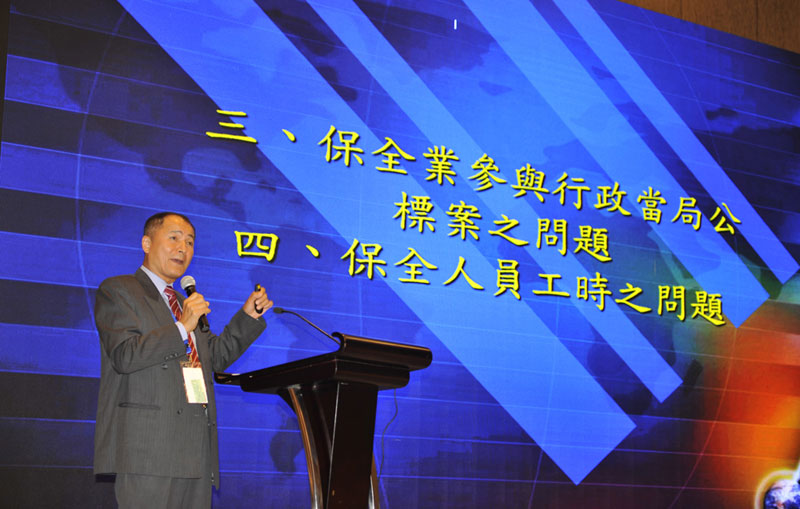 臺(tái)灣怡和保全公司副董事長(zhǎng)郭志裕作《現(xiàn)階段臺(tái)灣保全業(yè)面臨問(wèn)題之評(píng)析與興革》主題演講
