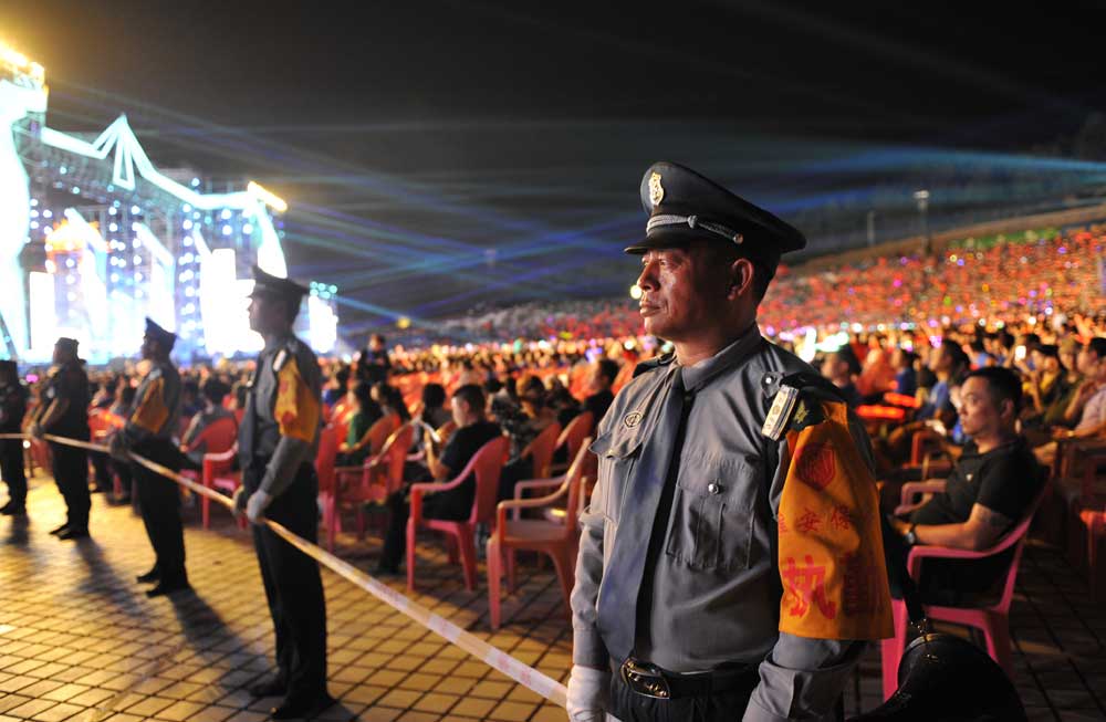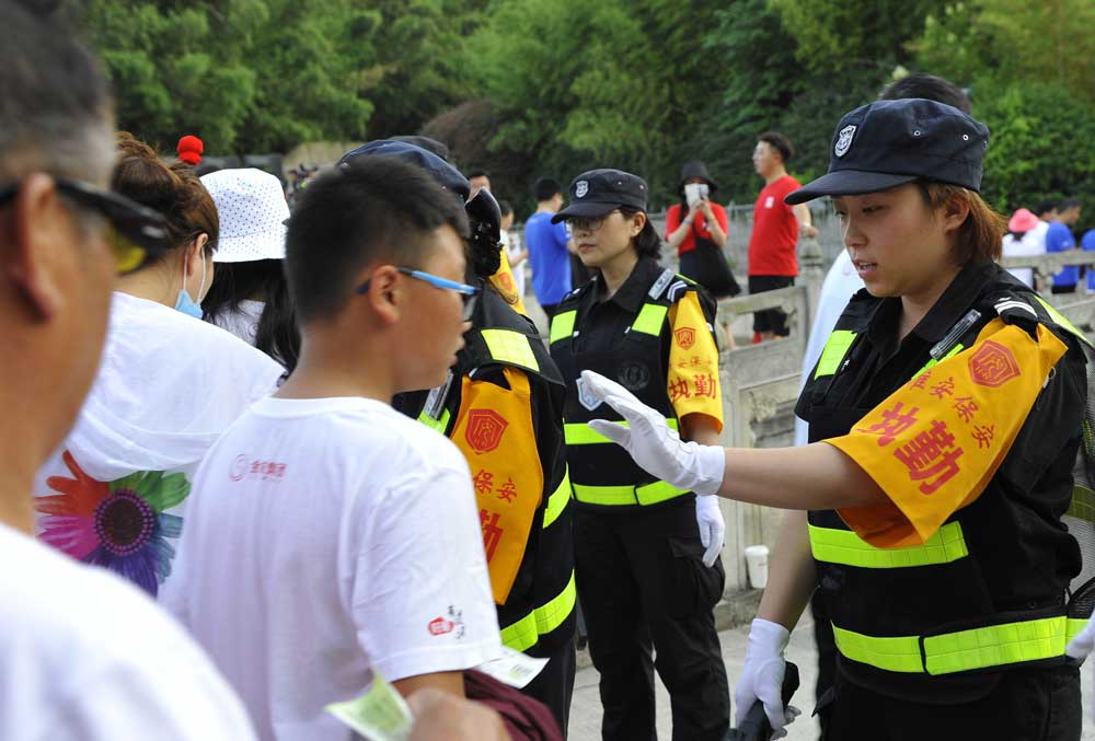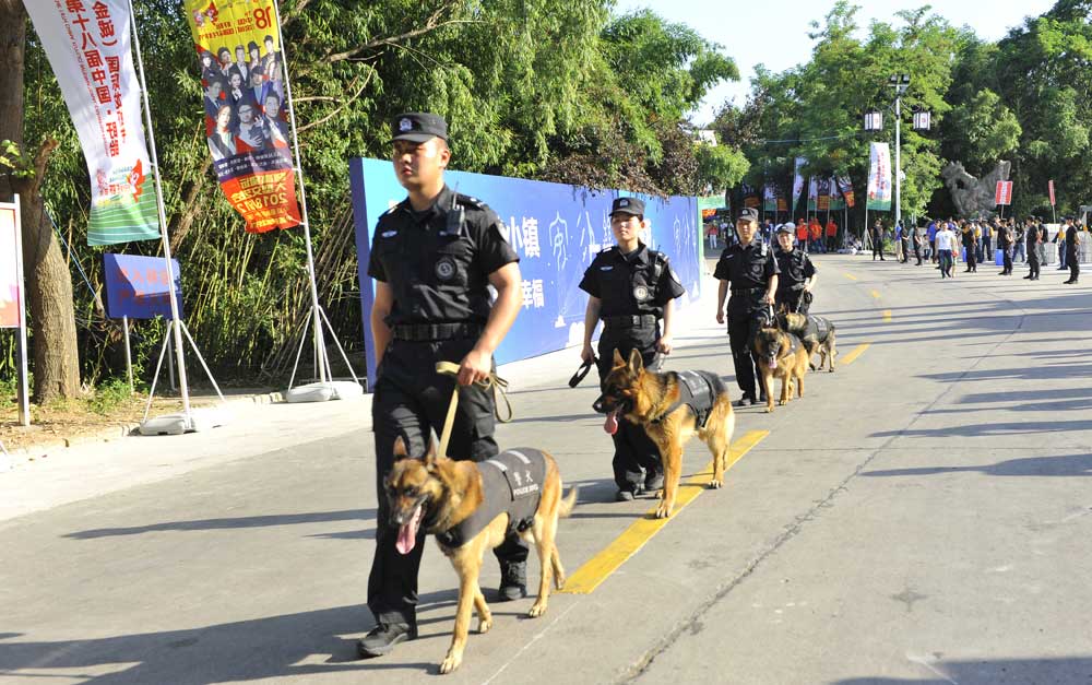 由于晚會演出現(xiàn)場地處山腰,給安檢和安保工作帶來一定的難度。為確實做好安保任務(wù),總公司多次召開專項工作會議,統(tǒng)一部署安保工作,人防中心總監(jiān)王錦春先后帶領(lǐng)領(lǐng)導(dǎo)班子多次到盱眙都梁廣場踏勘現(xiàn)場,熟悉崗位,開展現(xiàn)場拉練,研定安保方案。總公司迅速成立晚會票證檢查、安全檢查、搜毒搜爆、秩序維護、安保巡邏、駐地保衛(wèi)、無人機監(jiān)控、突發(fā)事件處置組等安保小組,同時抽調(diào)行政中心、人防中心、押運中心、科技公司、器材公司、犬防大隊、無人機飛控隊、保安中專班、銀盾檢測站等部門人員參與安?;顒?。
