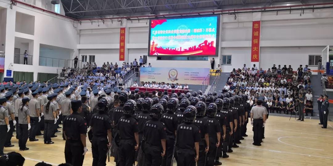 為更好的履行“保安勇?lián)?dāng),忠誠保大慶”主題活動(dòng),有力推進(jìn)和提升全省保安服務(wù)行業(yè)的人才隊(duì)伍建設(shè)、綜合業(yè)務(wù)技能和履職能力,更好地服務(wù)新中國成立70周年大慶安?;顒?dòng),9月16日下午3點(diǎn)30分,由省公安廳,省人社廳,省總工會(huì),共青團(tuán)江蘇省委主辦,江蘇省保安協(xié)會(huì)承辦的“江蘇省保安員職業(yè)技能競(jìng)賽決賽開幕式暨全省保安行業(yè)服務(wù)保障國慶70周年安保誓師大會(huì)”在江蘇省司法警官高等職業(yè)學(xué)校(鎮(zhèn)江)舉行。全省13個(gè)地級(jí)市13支代表隊(duì)117名保安員參加了決賽。開幕式由江蘇省保安協(xié)會(huì)會(huì)長秦軍主持,公安部三局顧巖處長、中保協(xié)第一副會(huì)長劉紹武、江蘇省公安廳黨委副書記副廳長尚建榮、省人社廳副廳長朱從良、省總工會(huì)副主席井良強(qiáng)、團(tuán)省委副書記潘文卿、江蘇省監(jiān)獄管理局政治部主任袁誠、鎮(zhèn)江市副市長公安局長陳金觀等領(lǐng)導(dǎo)出席開幕式并講話。部分省、自治區(qū)、直轄市保安協(xié)會(huì)、公安機(jī)關(guān)分管領(lǐng)導(dǎo)和保安公司負(fù)責(zé)人參加安保誓師大會(huì)。淮安市公安局副局長唐衛(wèi)東、治安支隊(duì)政委顏志龍、巡特警支隊(duì)支隊(duì)長王彤、保安監(jiān)管大隊(duì)大隊(duì)長呂述山、淮安市保安服務(wù)總公司總經(jīng)理趙愛忠等領(lǐng)導(dǎo)參加了開幕儀式。開幕式上,全體保安人員,進(jìn)行了“保安勇?lián)?dāng),忠誠保大慶”集體宣誓。